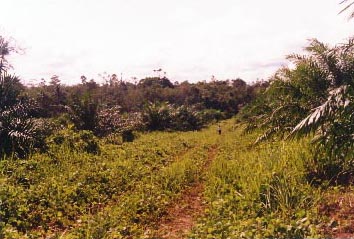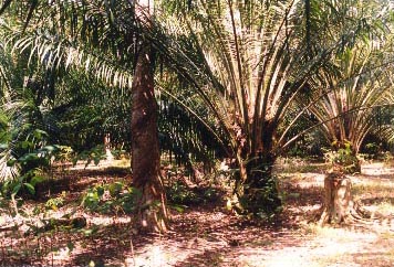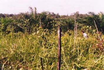 8. A disputed zone within the plantation (Division 5). Neglected oil palms with secondary forest (mamak) formerly farmed by local people beyond.