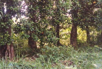 6. A villager from Keladi's remaining fruit trees (cempedak), now surrounded by oil palms. The owner has protected them day and night from encroachment by the plantation.