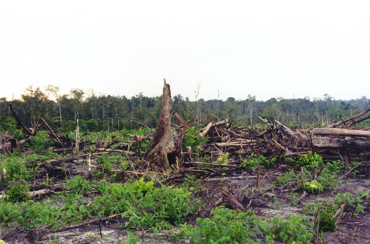15. The cleared remains of community forest along the R. Rungau. Maturing secondary forest is clearly visible in the background.